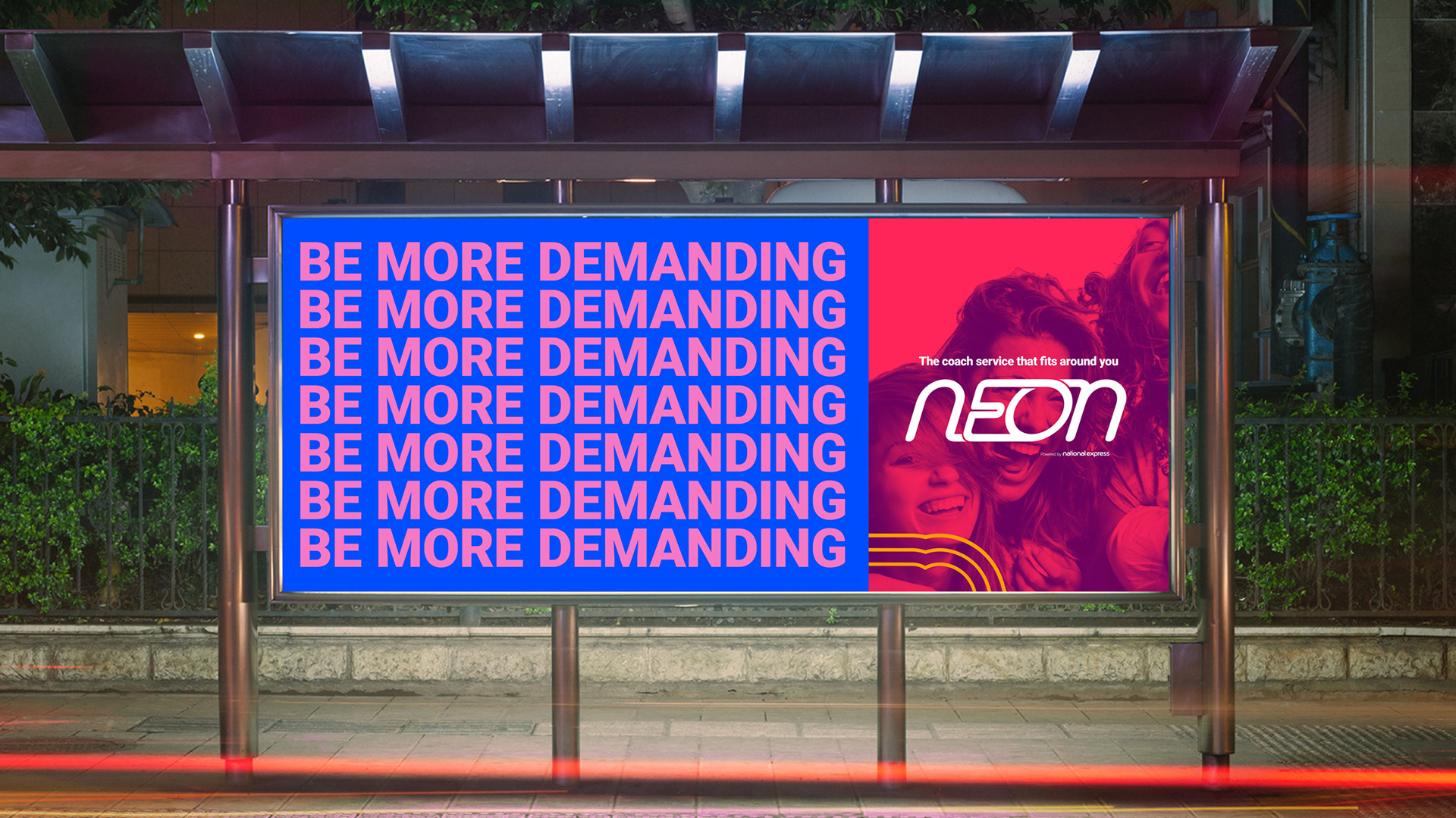 neon is a brand new on-demand coach travel platform powered by National Express, allowing customers to travel when and where they want - sporting events, concerts and beyond. The service is aimed at a young demographic, so the brand toolkit reflected this by utilising the existing National Express brand colour palette, yet given a more vibrant, bolder and ownable style that's sure get noticed on any small mobile screen.